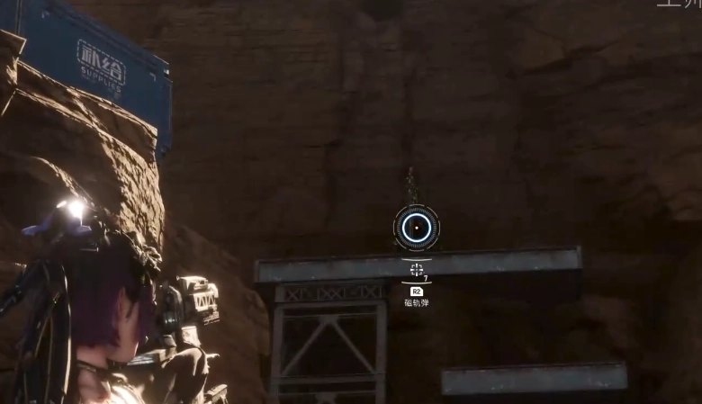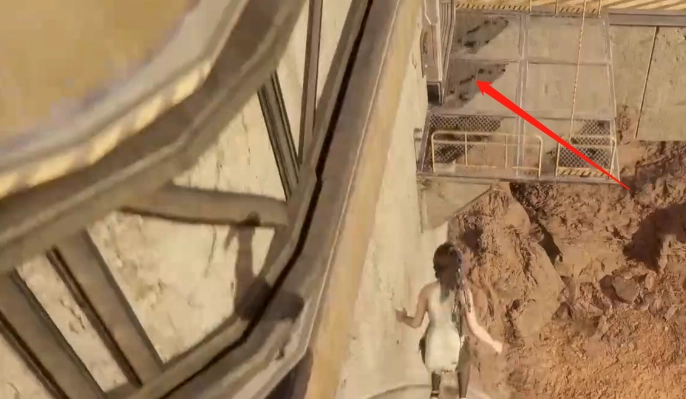 3、箱子是被锁在笼子里的,我们需要先把上面的靶子给打了,再用绳索荡进笼子里。