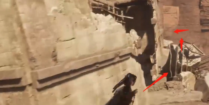 1、先来到下图所示的位置,一路攀爬来到旁边的侧门。