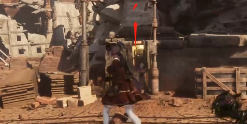 1、先传送到废土下图所示的电话亭处,密码在电话亭的西边。