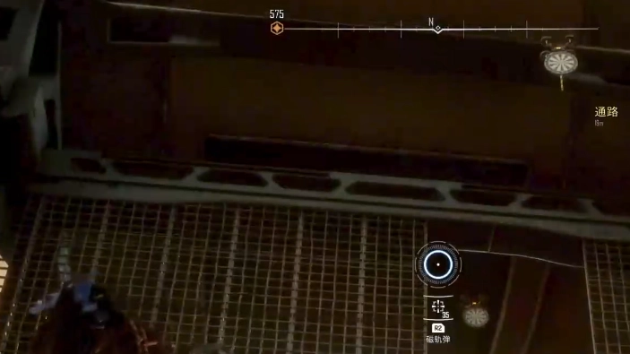2、踩着悬浮机器人往下走,在二层的时候扫描一下找到底层的机器人,把它干掉就可以拿到密码。