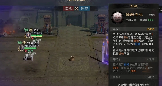 董卓在团队里扮演着肉盾的角色,身为三国时期以勇猛著称的武将,这一特质在游戏中也得到了充分体现。他的被动技能“悍勇不屈”,能让他在生命值低于30%时获得伤害减免与回血效果。战斗时将董卓放在首位,既能吸引敌方火力,为后排武将营造更安全的输出空间,还能凭借自身的坦度消耗敌方战力。对于新手来说,获取董卓的难度不算高,培养成本也相对较低,能在初期快速成型。