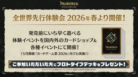 全球先行体验会将于2026年春季起陆续举办!在正式发售前即可抢先游玩,体验活动将在日本国内外的卡牌店以及各类活动中举办!(5月举办的「卡牌游戏祭2026」中也将实施!)凡参与者均可获赠原型试玩卡组!