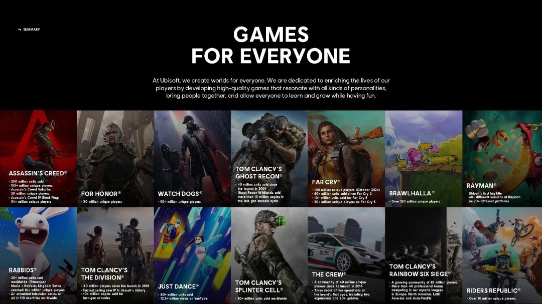 在育碧旗下的众多IP中,多个系列都展现出稳定的市场表现。其中,舞力全开系列以8000万份的销量位居公司第二;孤岛惊魂系列累计销量达6000万份;幽灵行动系列售出4000万份;细胞分裂系列则有3000万份的销量成绩。而刺客信条系列的市场领先地位在这些数据中尤为突出。