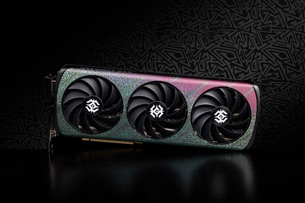 XGAMING系列标志性的潮流时尚设计理念,在正面特别做了珠光变彩处理,使不同角度呈现不同的色彩,是名副其实的“五彩斑斓黑”。散热系统采用了升级的冰芯2.0散热系统,确保GPU在长时间高负载下保持低温稳定运行。同时,该显卡还配备了压铸合金背板和坚固的金属中框,进一步提高显卡的整体强度。