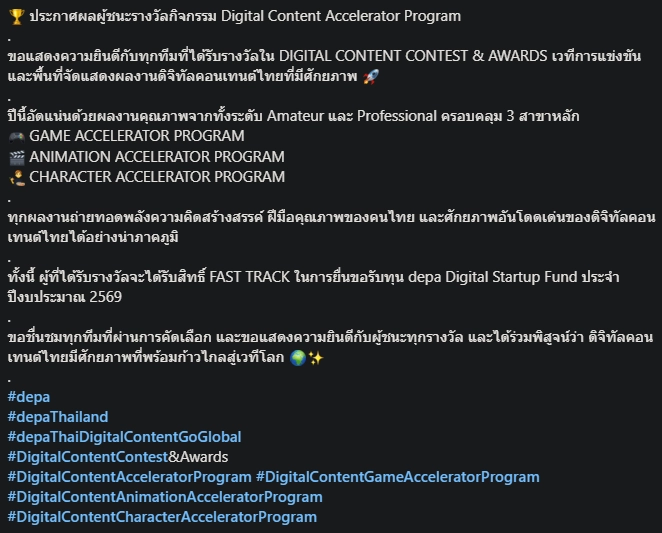 在此,我们衷心祝贺所有在 “数字内容竞赛与颁奖”(DIGITAL CONTENT CONTEST & AWARDS) 中获奖的团队!该平台是展示泰国潜力数字作品的竞赛与展览舞台。