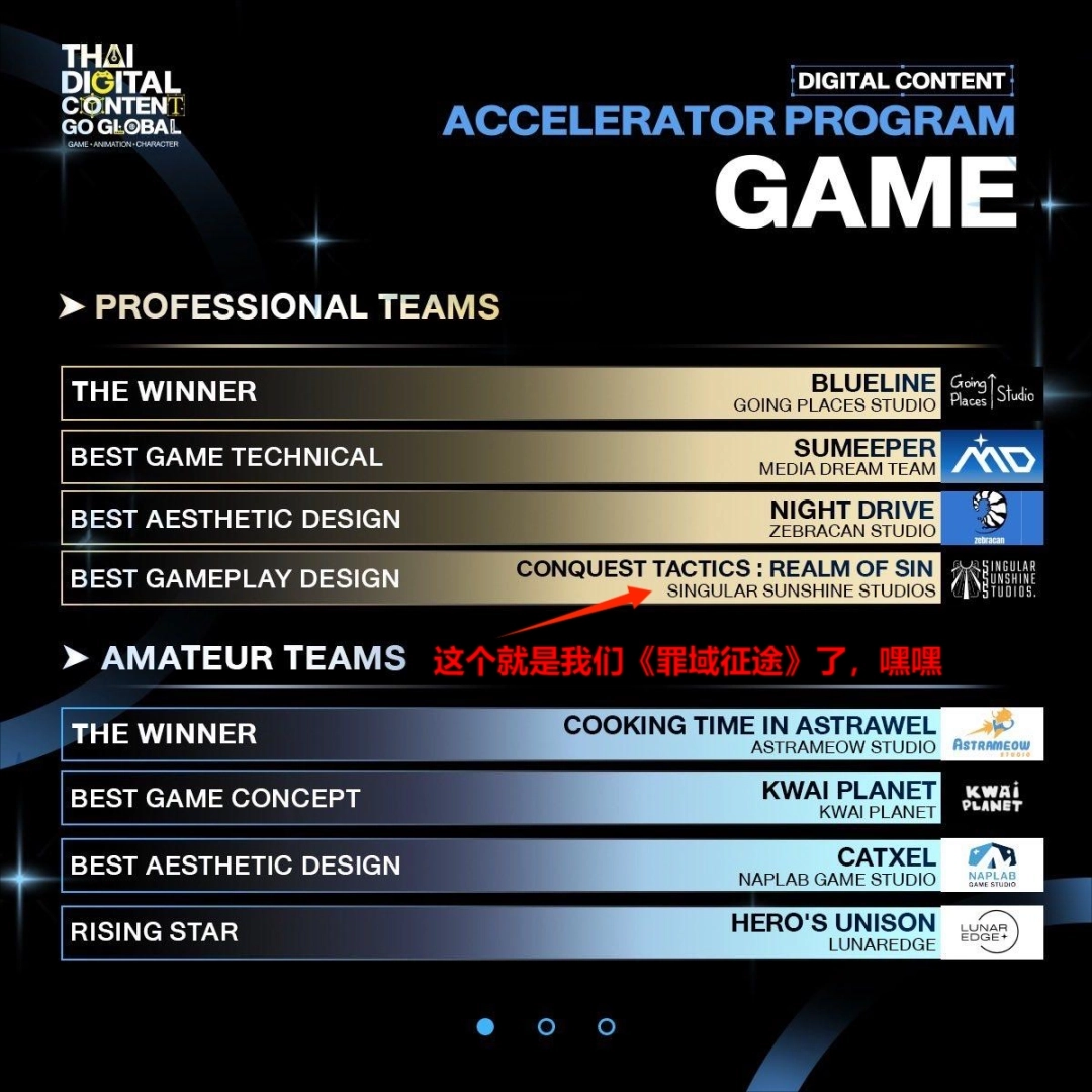 我们参加的是由泰国政府筹划进行的“数字内容加速器计划”,获奖者能获得一系列政策支持与申请资金支持的资格。这一波怎么说,没给大伙儿丢脸吧~?