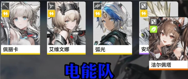 4、至于第四个则是最性价比的队伍电能队,队伍的成员由:佩丽卡+艾维文娜+弧光+洁尔佩塔组成,其中洁尔佩塔是第三期卡池角色,想抽抽洁尔佩塔还要再等上一段时间,佩丽卡是开局白送的角色,队伍循环快,连携频繁主打速切爆发。