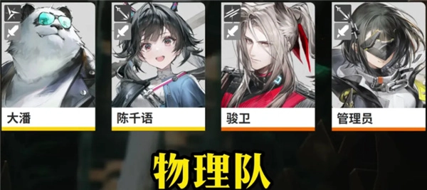 3、而说起第三个顶级阵容是物理队,队伍的成员由:大潘+陈千语+骏卫+管理员组成,综合强度较高,队伍的成本也较低,输出方面也非常稳定,生存、续航、强度手感都有兼顾,有黎风的话强度直接爆表,平民玩家前期开荒必备。