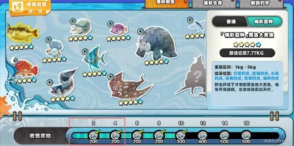 3、第三天(07月19日),钓齐13种鱼,售卖满1200渔币