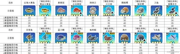 内容包括:装饰售卖价格表、水族馆装饰收集策略、稀彩收集注意事项、稀彩收集鱼竿对比指北
