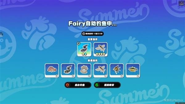 (3)辅助垂钓技能,目前不同代理人的辅助垂钓技能都一样:点击后,非强力渔获会直接完成垂钓,强力渔获则会直接消耗完鱼的兴奋值(红条),进入快点状态