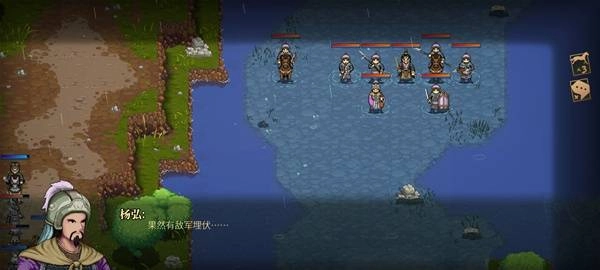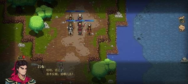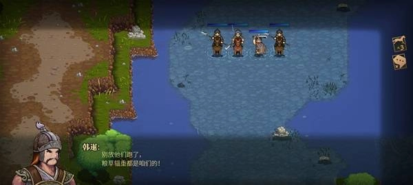 薛州(剧盗)部队(聚盗4人)从东南角浅滩出现阻击纪灵部队