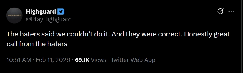 在度过了令人失望的一个月后,Wildlight Entertainment正式宣布《巅峰守卫(Highguard)》将于3月12日停止运营。
