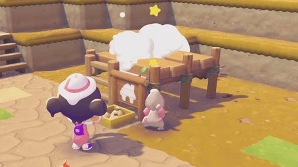 使用建筑套件建造建筑需要将特定的宝可梦带到现场。与工地前的箱子互动,查看你需要的材料和宝可梦。