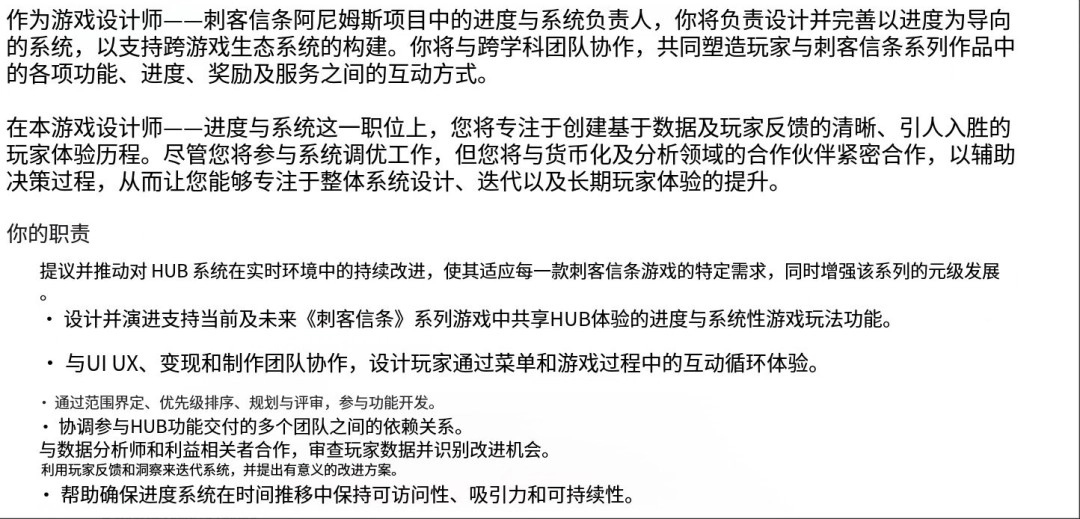 尽管该岗位的工作重心是Animus Hub平台,但职责范畴会延伸至整个刺客信条系列。作为系列未来作品的核心承载平台,这个中枢将发挥关键作用。