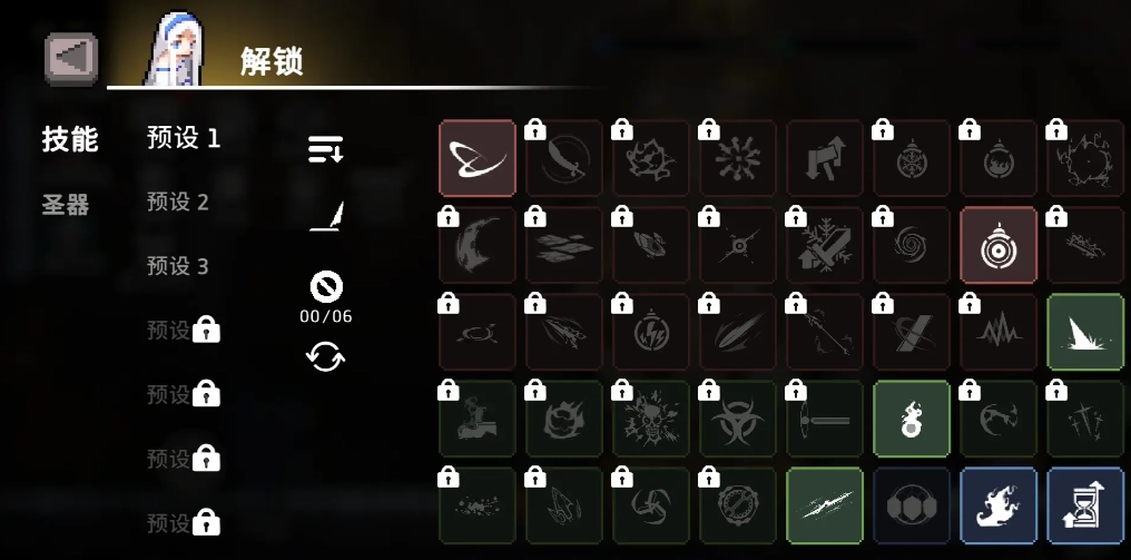 佣兵手拿巨剑~~~ 只能获得带有近战标签的攻击技能 主要玩法也是依靠触发反(闪避键)击保持无敌状