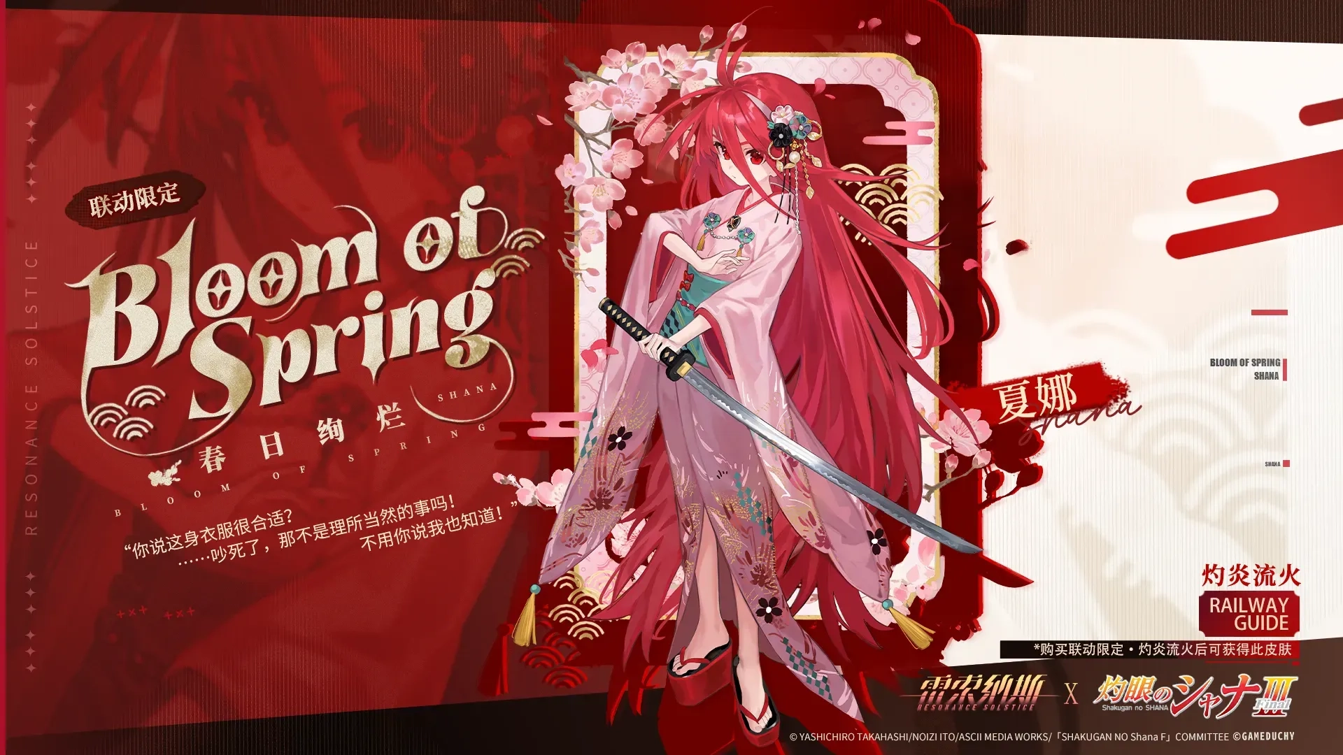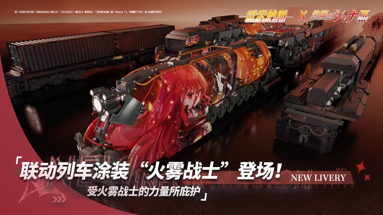 《灼眼的夏娜》联动列车涂装说明:这是专为来自异乡的夏娜定制的列车痛车外观。只要有这位炎发灼眼的讨伐者相伴同行,便意味着你已获得火雾战士的认可,也将得到其力量的守护。