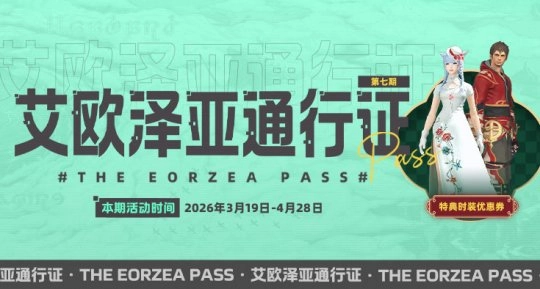 「艾欧泽亚通行证」第七期限时开放!全新的通行证活动现已上线!在本次通行证活动中,冒险者们可以通过完成每日任务获取经验值升级通行证从而获得「管弦乐琴乐谱:神龙见尾(交响乐版)」等道具奖励。解锁黄金通行证后更可获得「中国特典时装12800点券优惠券」等奖励!完成活动任务,获取经验值,一步步解锁高级奖励吧!