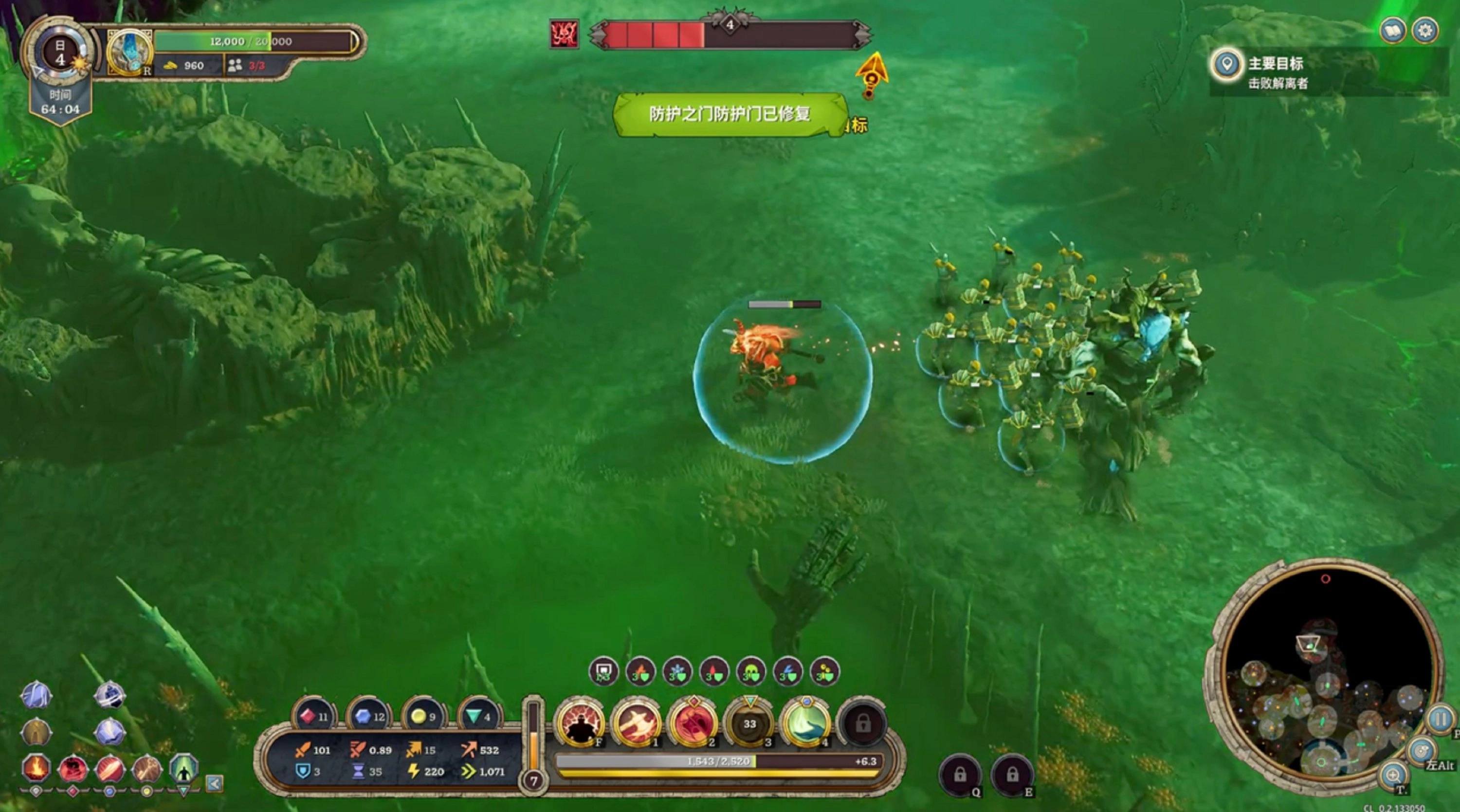 复杂机制的背后,是数值算法设计得相当严谨甚至繁琐,在前几轮游戏中,你的角色和部队都脆弱得如同纸糊。虽然游戏提供了大量的肉鸽随机Buff,但往往只有到中后期才能明显感觉到数值的提升。单人游玩时,这种感觉尤为明显——你会发现自己疲于奔命,既要守线,又要刷野,还要兼顾经济建设,很容易在猛攻阶段崩盘。相比经典肉鸽游戏中通过关键道具瞬间改变战局的爽感,本作更像是一种“线性积累”,直到某个临界点才让你感受到力量。
