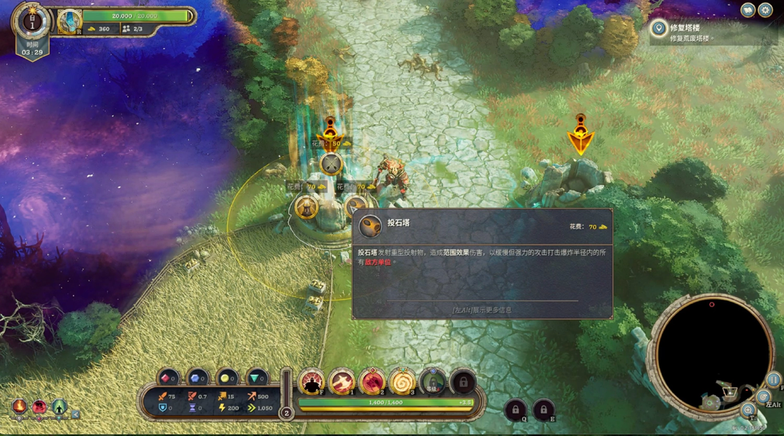 《永恒围城》有轻度塔防元素,由于敌人的进攻路线固定且塔的数量和位置固定,玩家无法像传统塔防那样自由搭建迷宫,防御塔更像是为你争取发育时间的工具。所以在这方面更像MOBA游戏,要注意兵线推进与塔的保护,尤其在前期人物较弱时非常重要,时间也很紧。
