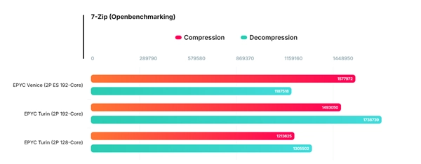 另一款100-000001863-02为64核128线程,搭配4条64GB DDR5-6400内存,两款芯片均参与了7-Zip压缩基准测试。