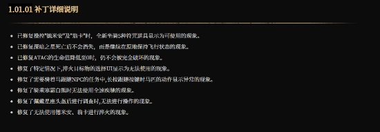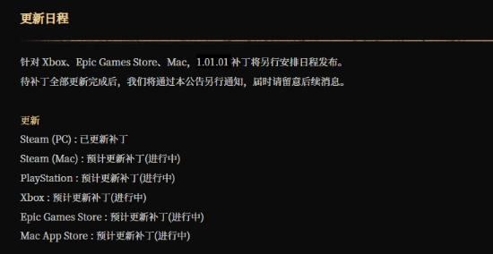 本次更新修复了许多影响游戏体验的BUG,该更新已在Steam平台上线,其他平台的更新时间官方会另行通知。