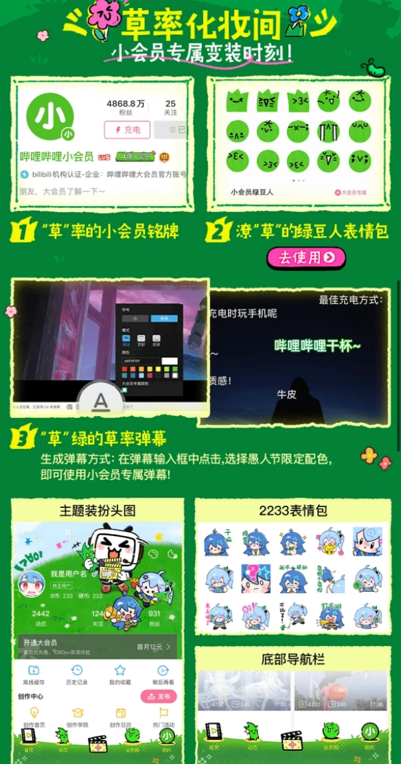 B站把原来的年度大会员临时换成了“小会员”,头像右下角会标上“小”字,而且会员标识和昵称都统一变成了翠绿色,这延续了平台多年来一贯的整活传统风格。