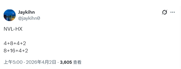 4月2日消息,据Jaykihn透露,Intel下一代发烧级笔记本CPU平台Nova Lake-HX的核心规格已浮出水面。