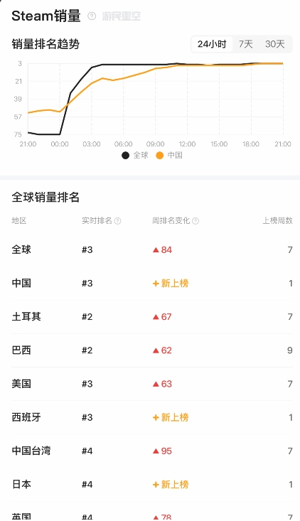 借助这一史无前例的低价,《生化危机4重制版》快速登上全球畅销榜第2名、国区畅销榜第1名(不含免费游戏),从侧面体现出玩家对这款作品的兴趣依然浓厚。