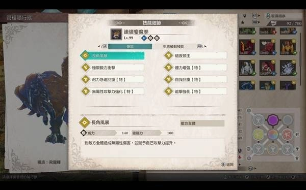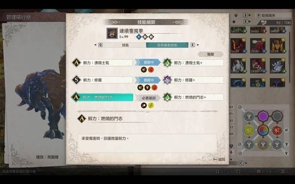 转过头来看看后者的技能极限毅力冲击,消耗全部血量这个技能限制,可以通过爵银龙独有的BUFF技能气血(每回合自身扣除1/5最大血量,但根据攻击造成伤害回复血量),极限毅力冲击打出去后扣剩1血也重新奶回满血,再加上火系速度因子自回特(每回合自身回复1/5最大血量)抵消掉气血BUFF的每回合开始时扣血,极限毅力冲击的自肃限制就解决了一半。极限毅力冲击的另一半自肃限制,是需要花费40耐力才能使用这技能,加上全力特(增加技能1/5的耐力消耗,增加技能的1/5伤害)就要花费48耐力(40*6/5)。