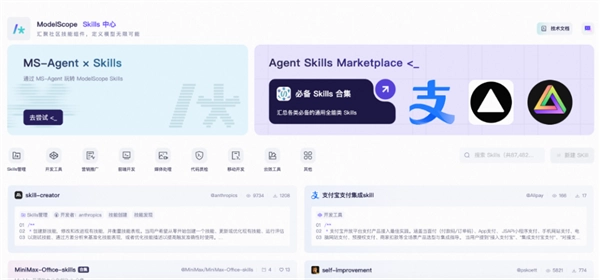 此次全新推出的支付宝支付集成Skill,目前已正式在魔搭社区Skills中心上线,面向所有践行Vibe Coding的开发者开放体验。