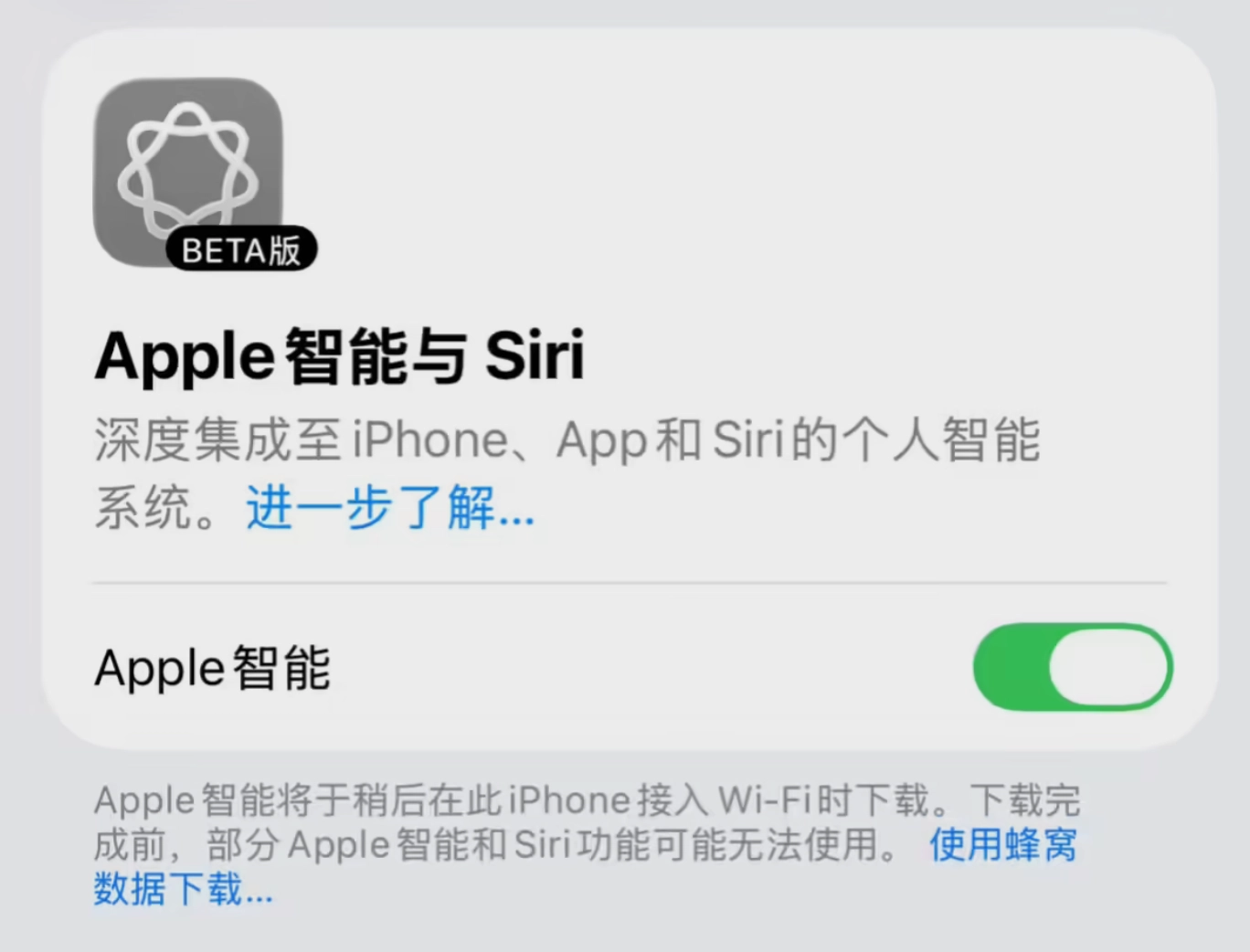 然而,这场惊喜并未持续太久。苹果官方迅速行动,通过远程服务器关停了所有国行设备上的“Apple智能与Siri”入口,设置页面恢复为原本的“Siri与搜索”。即便用户已完成9.5GB模型下载,功能也被全面禁用——重启设备后,所有Apple智能相关痕迹彻底消失,无法再次激活。有用户反馈,撤回过程中点击下载按钮已无进度条显示,服务器直接拒绝请求。