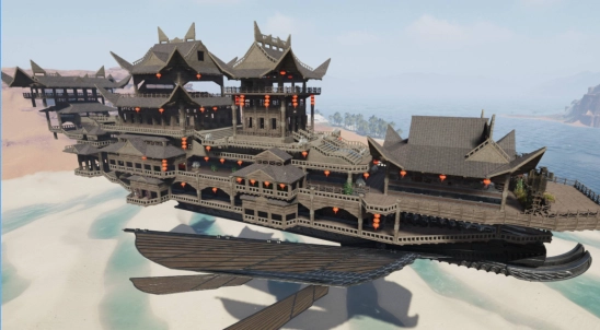 DLC还引入了激烈的飞空艇战斗,涵盖PvE与PvP两种模式。蓝图系统让玩家可将自己建造的船只上传为完整复制图,一键保存、随时还原。“无限建造”模式则提供无限建筑素材,让创作不再受资源门槛限制。无论是中国风阁楼还是古埃及战舰,玩家都能发挥想象力,在游戏中创作风格迥异的飞船。