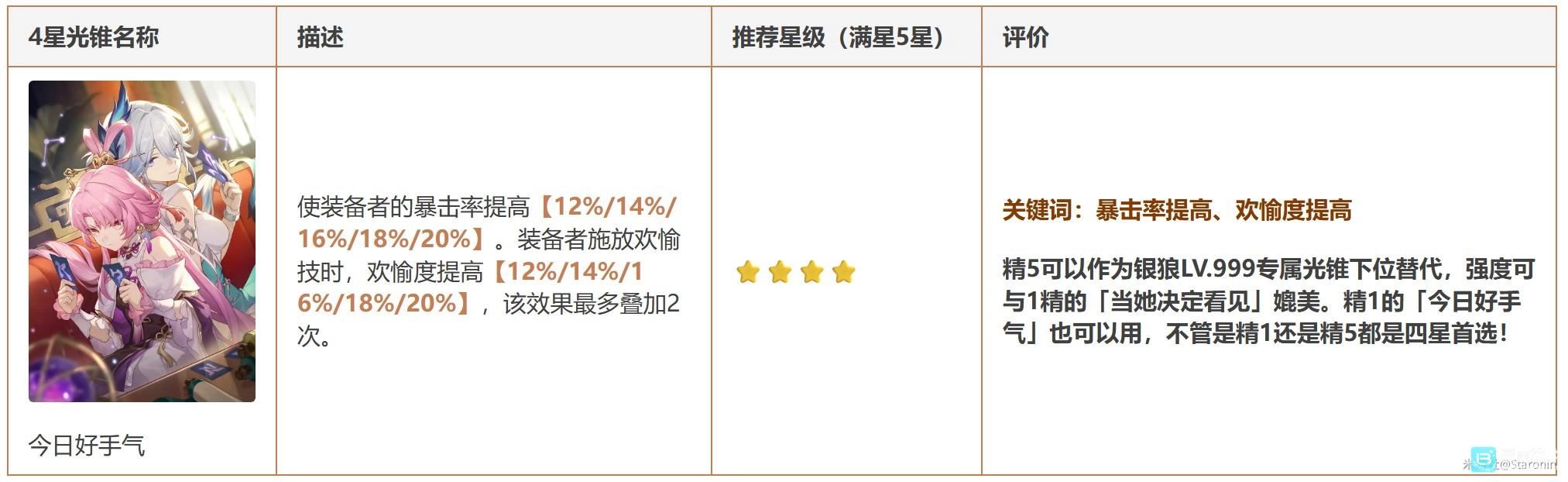 以上就是小编为你整理的“崩坏:星穹铁道银狼LV999四、五星光锥推荐”啦,想要了解更多游戏攻略的话,记得关注灵宝哦!