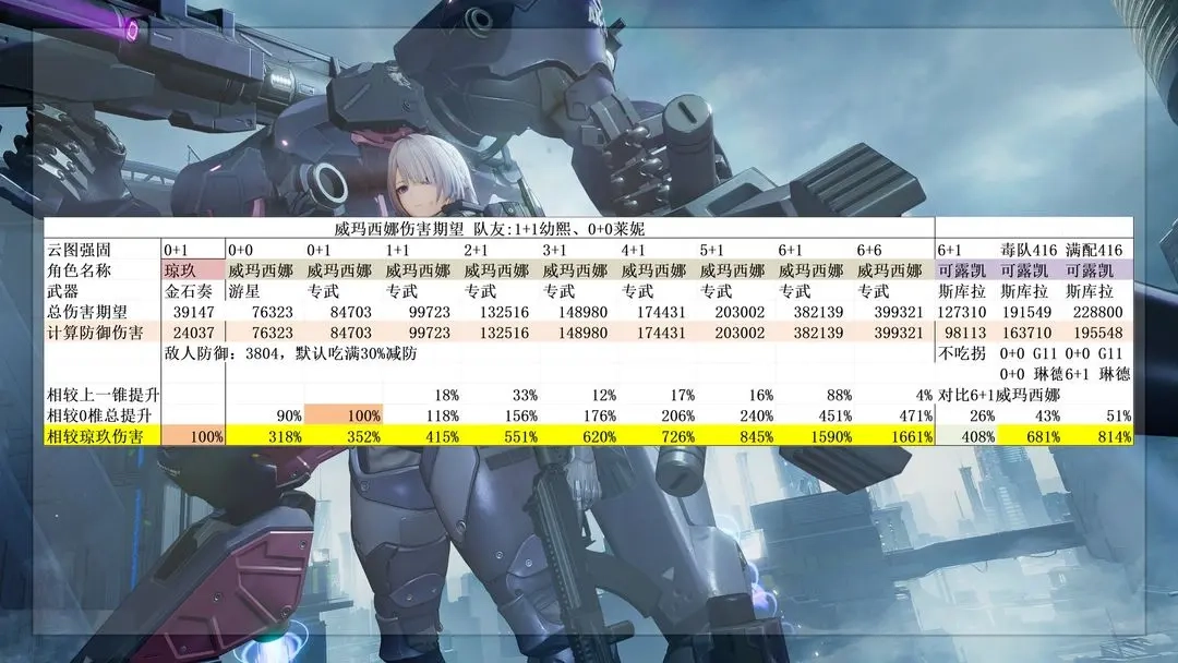 资源紧张可暂缓专武,6+1威玛西娜+0+0幼熙+0+0莱妮即达常驻300%无视防御。