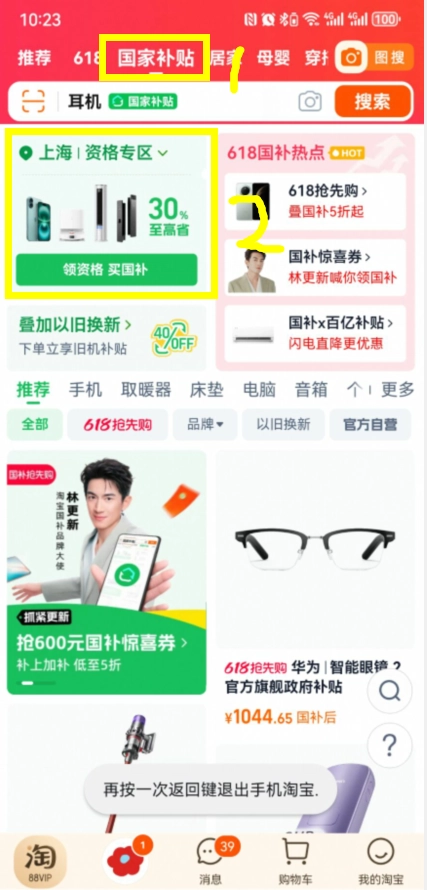 资格领取成功后,在支持国补的商品页面下单,系统会自动抵扣补贴金额(最高20%,手机单件封顶500元)