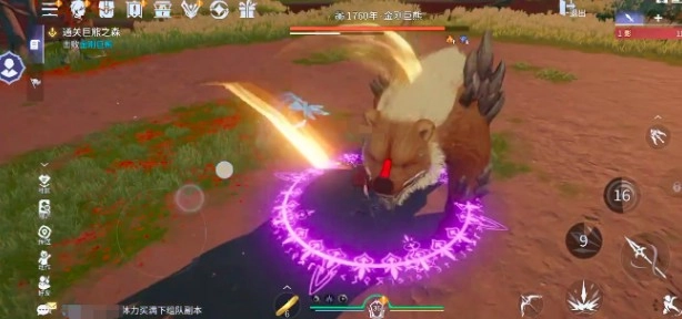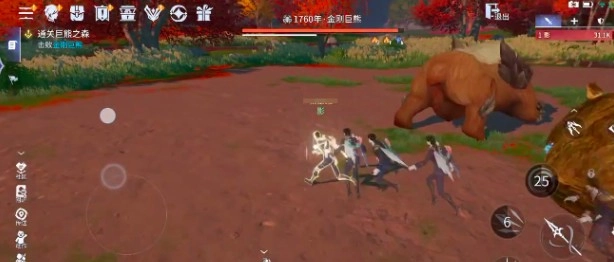 讨伐巨熊之森的话,玩家可以先进入到开阔型的草地当中,此时要留意左侧的小任务栏,当显示击败金刚巨熊这个任务后,此时就可以开启自动寻路模式,利用地形一路清除各种小怪,清除小怪完毕后,就可以直面金刚巨熊这个大boss,玩家首先要做的是对红圈进行快速预判,及时使用控制技能对巨熊的攻击进行打断,在相应的指定范围内,完成紫色环形技能的释放,快速闪避后迅速撤离,不要被高额伤害集中。