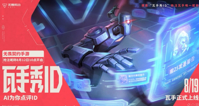 《无畏契约:源能行动》即将于8月19日全平台上线,而从8月12日10点起,激动人心的ID抢注活动已火热开启!此次抢注意义非凡,你心仪的独特ID先到先得。玩家可在微信搜索“瓦手秀ID”小程序进入活动,输入精心构思的昵称,提交后还能获得AI给出的创意含金量点评,彰显你的个性与品味。