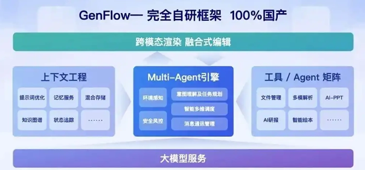 此次GenFlow2.0更进一步,核心竞争力在于其自研的Multi-Agent基础架构,能调动100+多模态专家智能体组成“AI专家团”,同步处理各类任务。