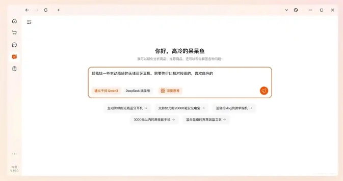 淘宝曾在5月推出“桌面版”客户端,引入了AI导购助手功能,号称整合了Qwen3和DeepSeek,主要帮助用户挑选商品,官方展示了“3000元以内的高性能手机”、“支持快充的20000毫安时充电宝”等,不过也可以利用其他提示词让AI输出各种内容。