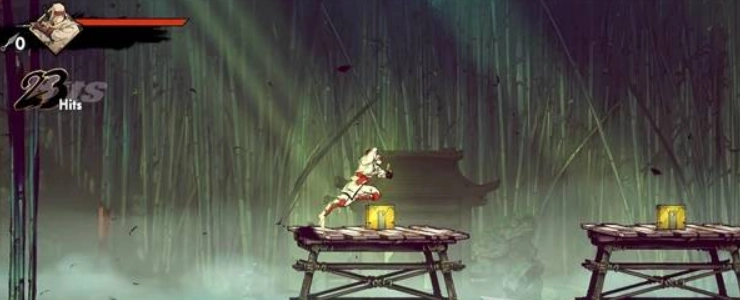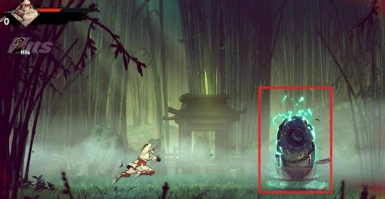 继续前进后,可以看到两个高台上各有一个黄色箱子。攻击箱子后可获得一定的补给,用于回复手里剑数量和部分生命值。