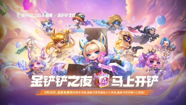 8月30日金铲铲之夜,登录游戏免费领四周年宝箱,最低可得英雄级小小英雄!