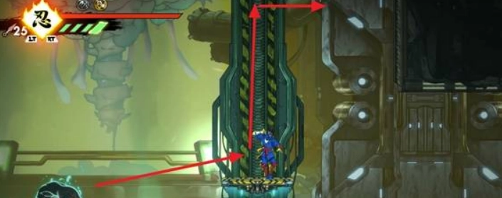 沿尽头的乘风道向上攀爬,途中需巧妙卡位于激光机关中间,熟练掌握滑翔伞操作是关键。