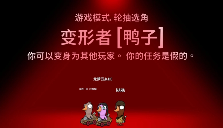 《鹅鸭杀》玩家,变形者这一角色的技能十分有趣。它隶属于鸭子阵营,核心技能是按shift发动的变形,三次一循环。先是贴近目标,选中对方颜色,接着瞬间变成所选颜色外观,完成变身。技能强度极高,发动后搅乱局势,让人难以盘出凶手。无论是在人群中混刀,还是变身好人泼脏水,变形者都能凭此技能大显身手。